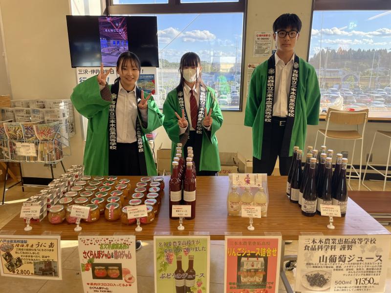 本校で製造したリンゴジュースの品種別詰め合わせ、山ぶどうジュース、